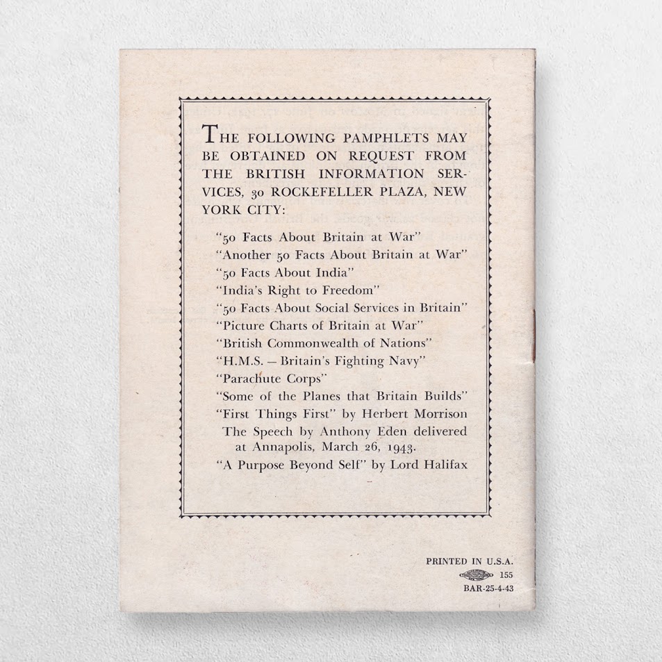 24mo pamphlet dated 1943 which mentions a quote by Winston Churchill. Text in English. Very slightly rubbed. A very good plus copy of a scarce item. From the collection of Steve Forbes, chairman of Forbes Magazine.