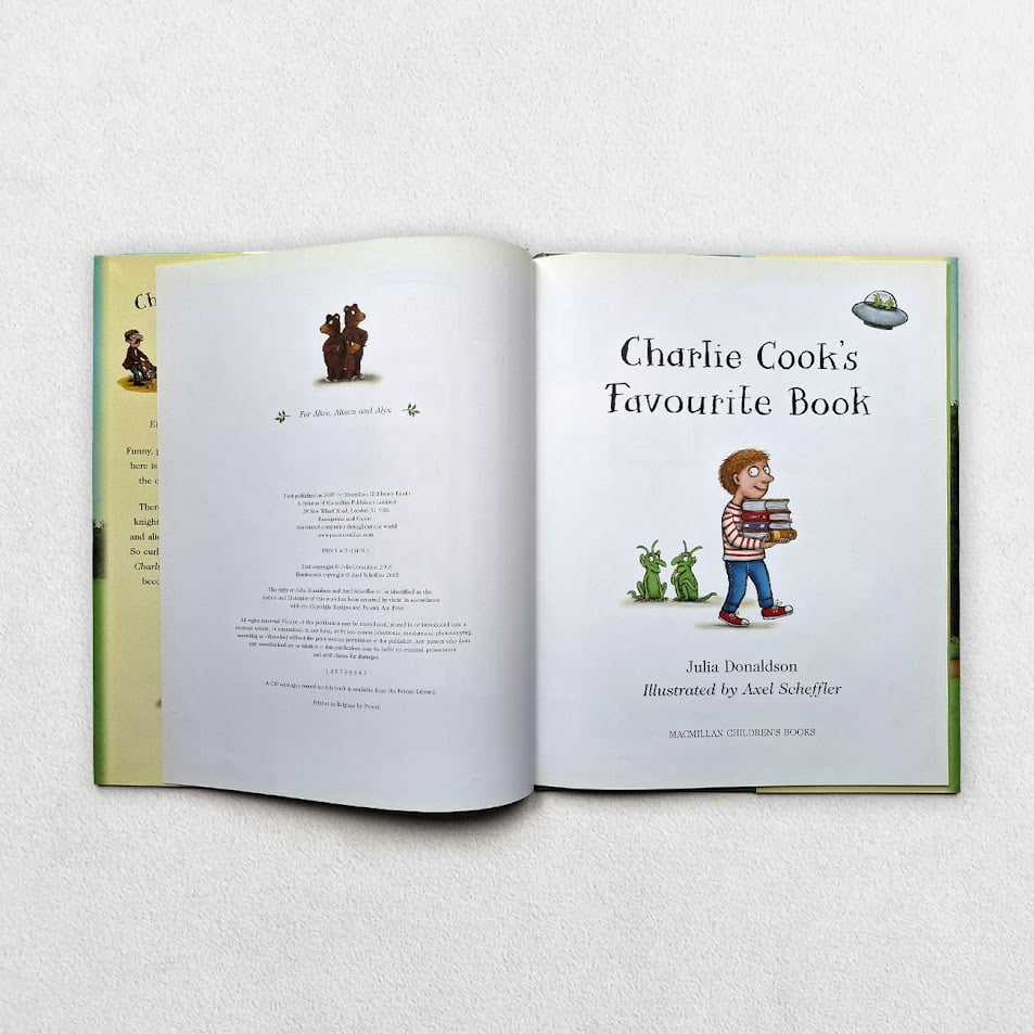 “Charlie Cook’s Favourite Book” is another charming and imaginative children’s book written by Julia Donaldson and illustrated by Axel Scheffler, the same creative team behind other beloved titles like “The Gruffalo” and “Stick Man”. Published in 2005, this book is a celebration of stories and the joy of reading.