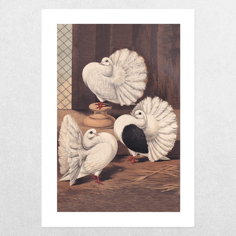 The “Fantails Or Broad-Tailed Shakers” by J. W. Ludlow showcases the exceptional chromolithographic technique of the 19th century, renowned for its rich colours and intricate details. Ludlow was a distinguished artist known for his exquisite bird illustrations, capturing the elegance and beauty of avian species with remarkable accuracy.