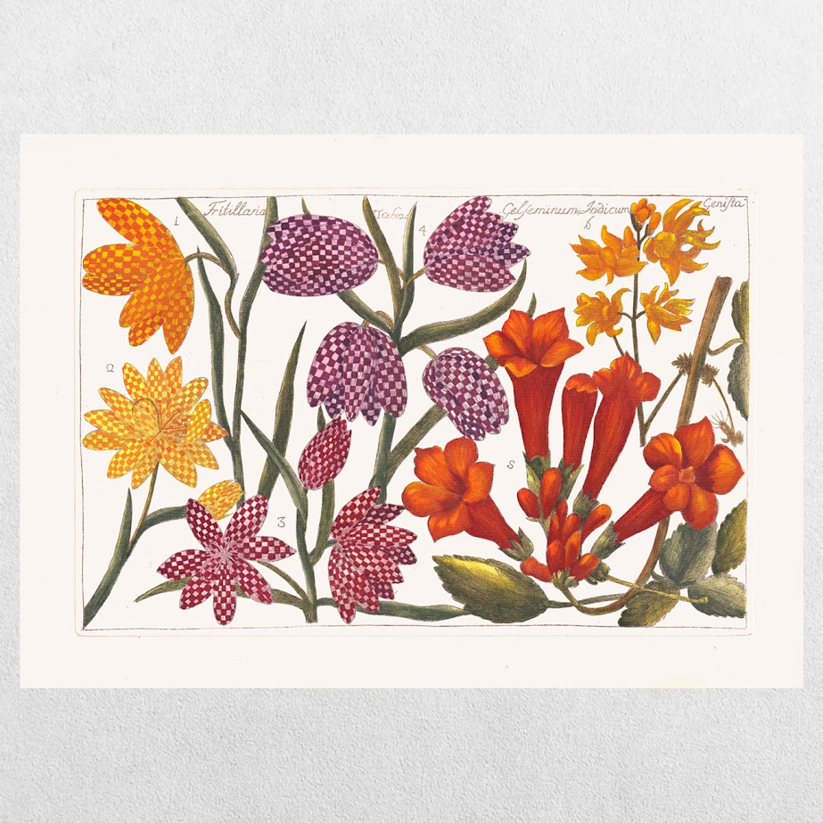The volumes also include a catalogue of “noble” species, with descriptive accounts of each flower illustrated in the sixty-five plates that accompany the text. These illustrations were developed in collaboration with Arena’s colleague, the painter Mario Cammareri. Many of the flower renderings were inspired by earlier botanical publications, most notably Johann Weinmann’s Phytanthoza Iconographia and G.B. Ferrari’s De Florum Cultura.