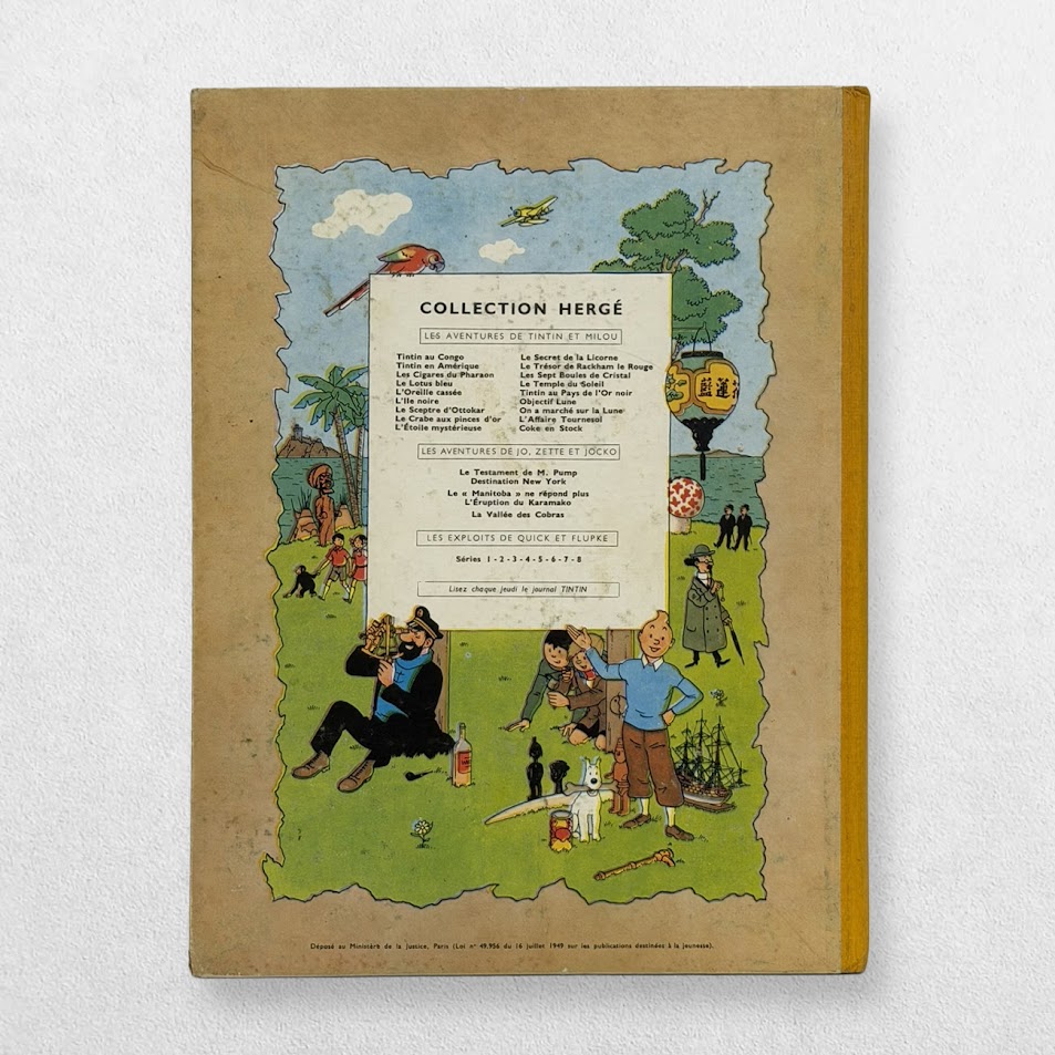 Casterman, 1958 but not dated. Printed in Belgium. Reprint. Copyright page dated 1947. Original cloth-backed boards. Pictorial blue endpapers. Yellow spine cloth. Pp. 62. Illustrated throughout in colour by the author. Rear panel shows last printed title as ‘Coke En Stock’. Binding nice and tight with minor rubbing and creasing to the spine and edges of the boards. Slight age toning to the pages as usual. A very good plus, tight, copy.