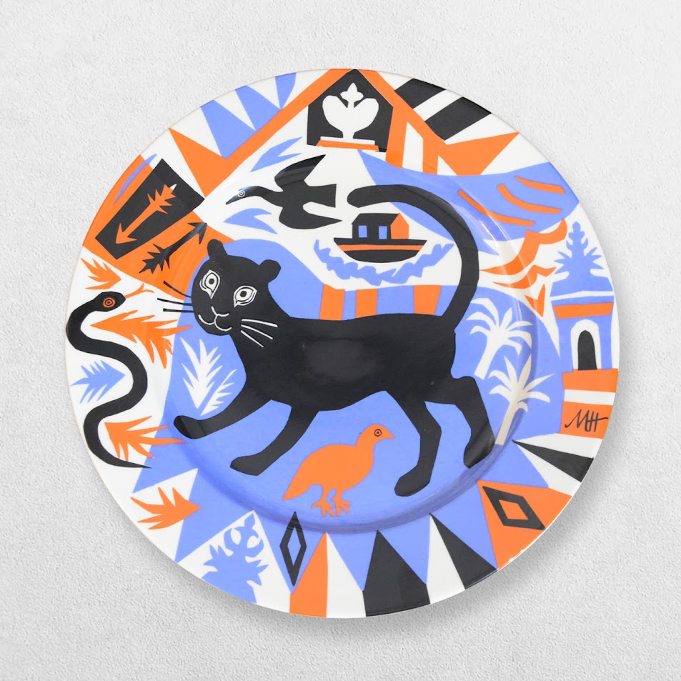 Hearld’s art draws inspiration from British flora and fauna, folk traditions, and mid-twentieth-century British artists such as Eric Ravilious, Edward Bawden, and John Piper. He also acknowledges the influence of Picasso’s collages and ceramics, particularly in the spontaneity and rhythm of his compositions.