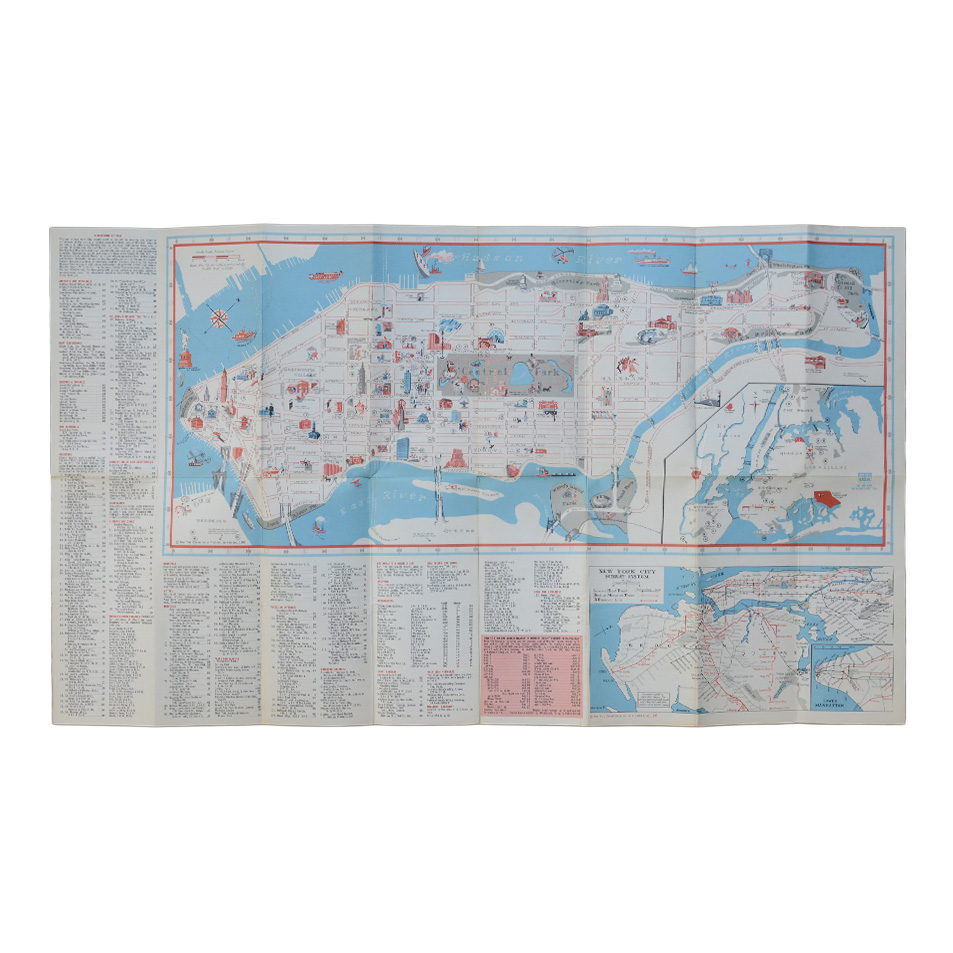 Date: 1965. Folding map. Size when opened out: 75.8cm x 43.4cm. Map is bright and clean and in lovely condition. The reverse gives details of the attractions of the city along with information about ‘The Worlds Fair’ of 1964 and 1965. In near fine condition overall.
