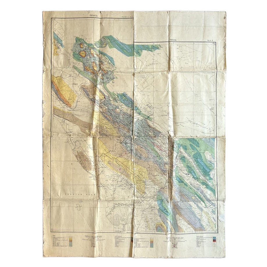 Second, it embodies the interwar period when petroleum geology in Iran was moving from local discovery into broader regional structural correlation. The map is not focused on one well or one field; it attempts to understand an entire belt of folded and potentially productive structures.
