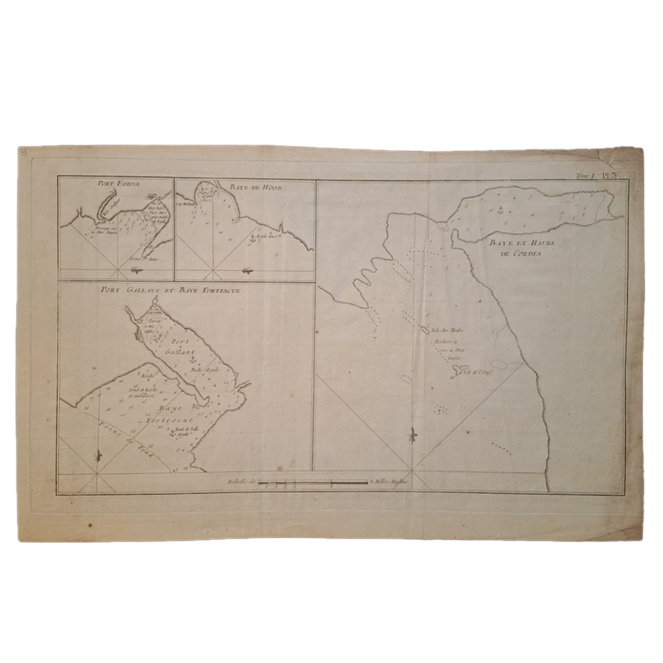 PORT FAMINE – BAYE DE WOOD – PORT GALLANT ET BAYE FORTESCUE – BAYE DE HAVRE DE CORDES – TOME I – PLATE 3