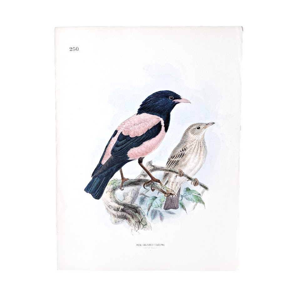 Rose-Coloured Starling – Pastor roseus – Original Hand-Coloured Lithograph