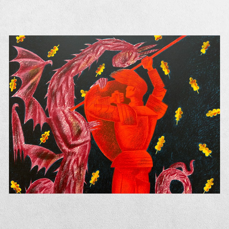 Hicks-Jenkins frequently draws on folklore, medieval romance, and storytelling traditions. His acclaimed “Green Knight” series, inspired by Sir Gawain and the Green Knight, is a notable example—combining medieval narrative with contemporary graphic invention.