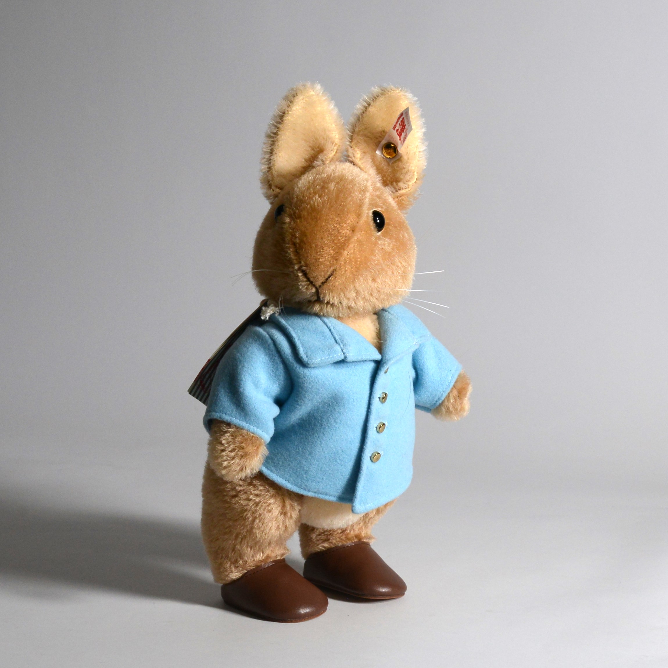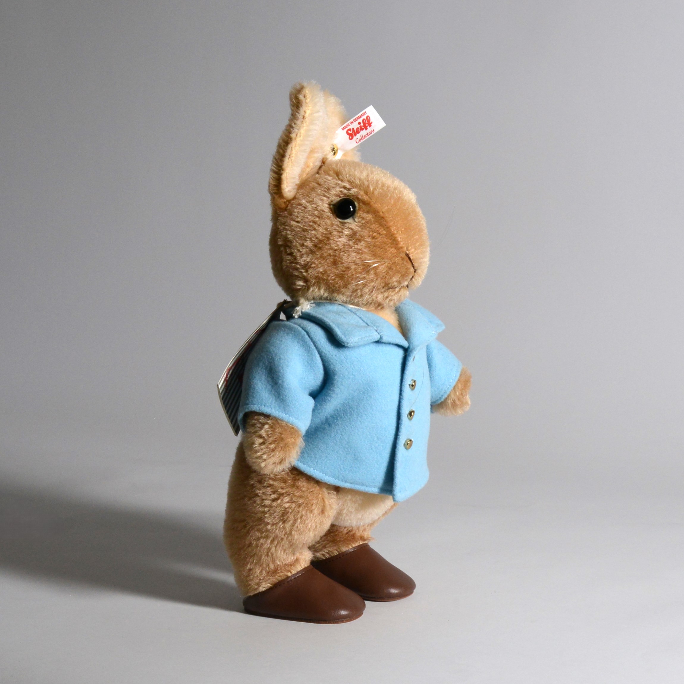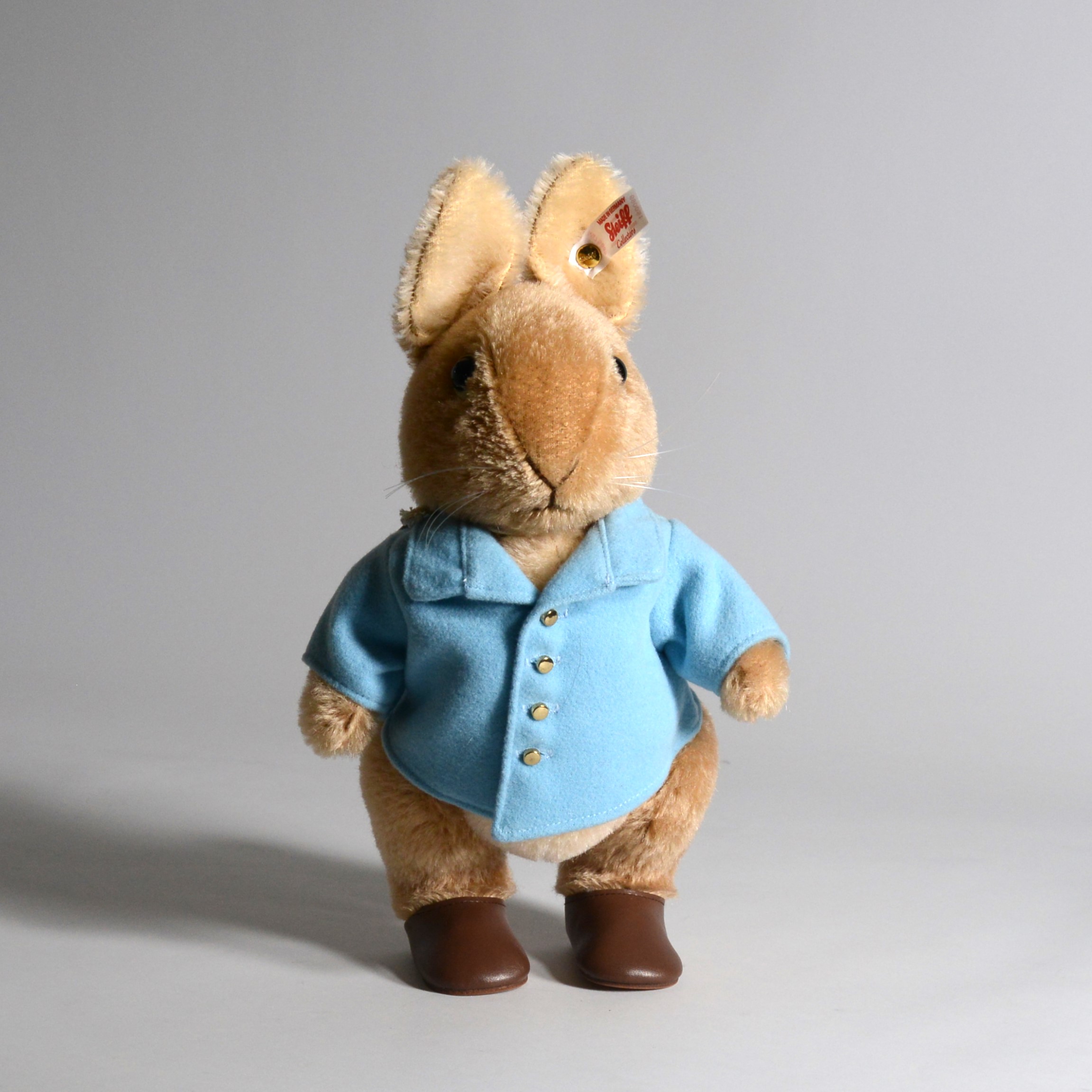 As with all premium Steiff collectibles, Peter wears the gold-plated “Button in Ear”, the hallmark of authenticity and quality, along with a white tag bearing red lettering, indicating his status as a limited edition. Only 5,000 pieces were made worldwide, making this version of Peter Rabbit a highly sought-after piece for collectors of Steiff and Beatrix Potter memorabilia alike.