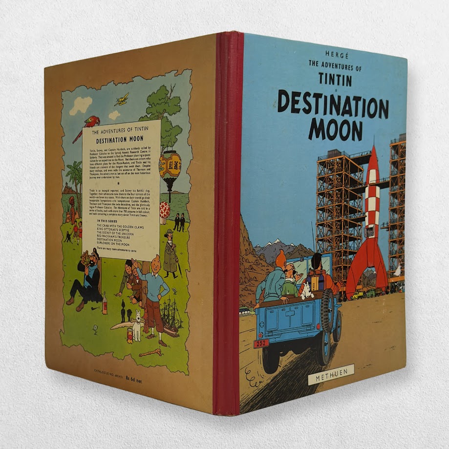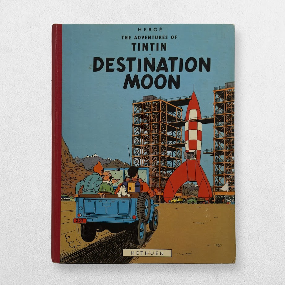 Destination Moon (Objectif Lune, 1953) is the sixteenth volume in The Adventures of Tintin series by Hergé (Georges Remi). It marks a decisive turning point in the saga — the moment when Tintin, Captain Haddock, and Professor Calculus leave behind the political and colonial themes of earlier adventures to embark on one of the most visionary feats in twentieth-century comic art: the conquest of space.