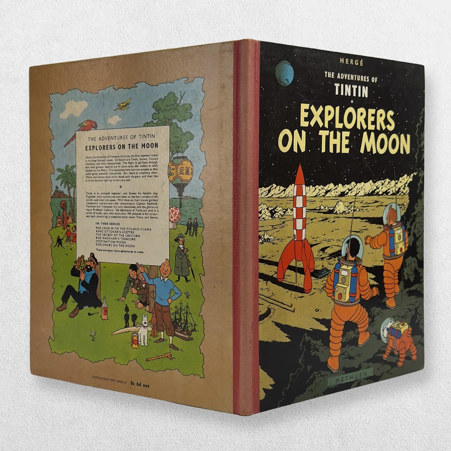 Explorers on the Moon, first published in French in 1954, is the seventeenth volume in Hergé’s The Adventures of Tintin series. It is the direct sequel to Destination Moon and depicts Tintin, Captain Haddock, Professor Calculus, and their companions undertaking one of the most ambitious journeys in comic history: the first manned expedition to the Moon. Combining scientific plausibility with thrilling adventure, the story is a landmark in both the Tintin canon and the history of graphic storytelling.