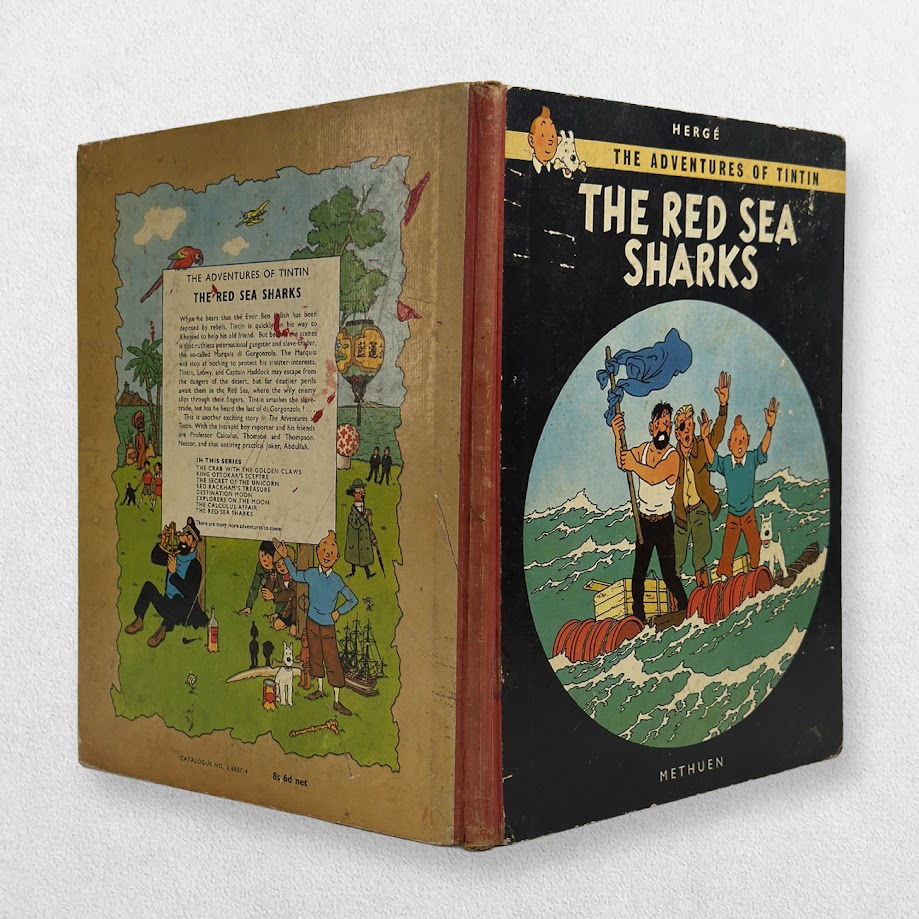 The Red Sea Sharks, first published in 1958 in French, is the nineteenth volume of The Adventures of Tintin. It is one of the more politically charged stories in the series, weaving together themes of arms dealing, slavery, and international intrigue. Set largely in the Middle East and the Red Sea, the narrative blends adventure with social commentary, while retaining Hergé’s trademark humour and visual clarity.