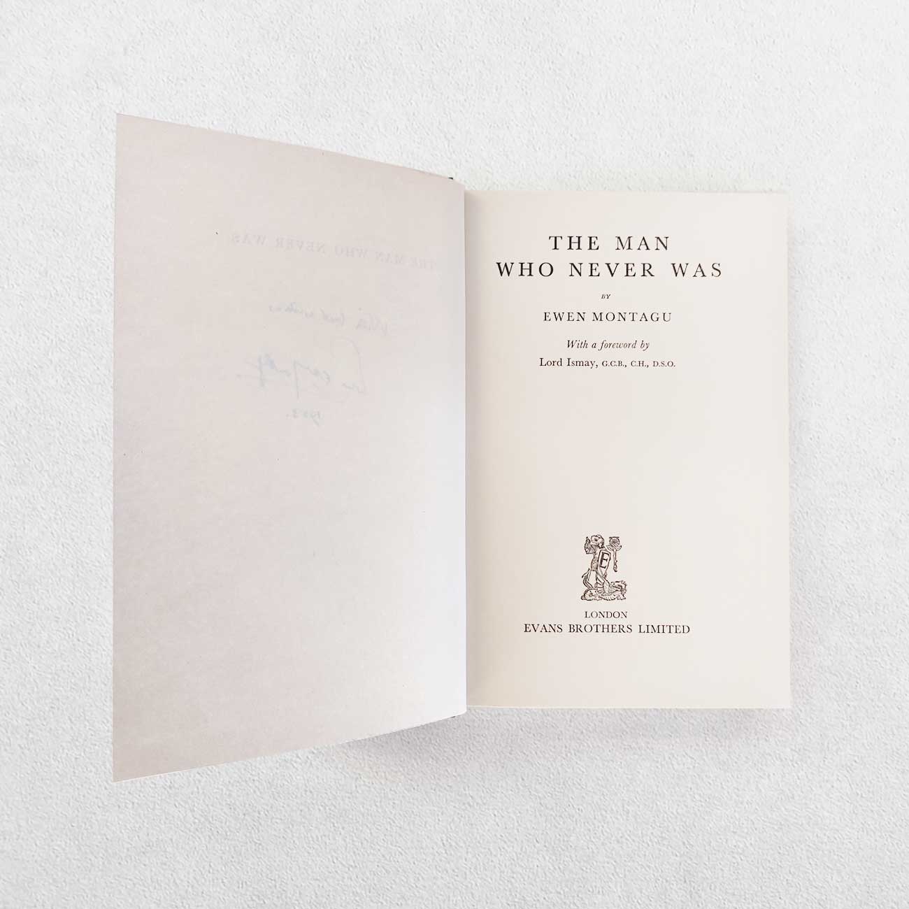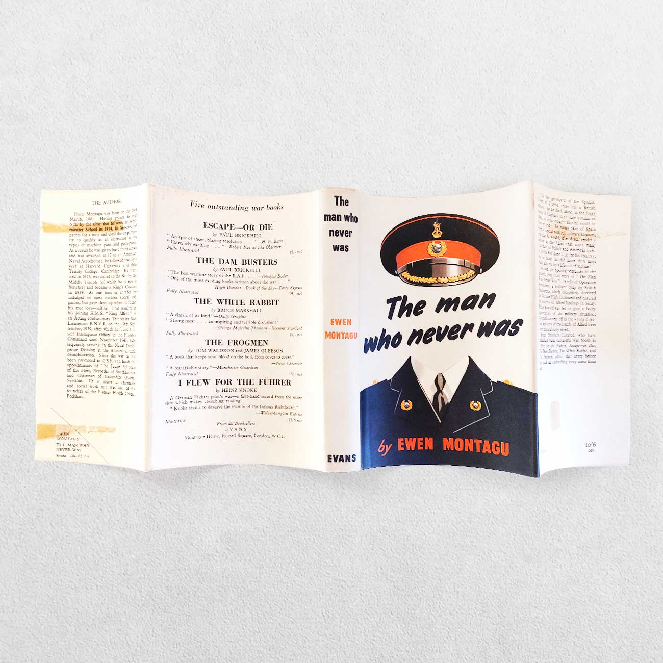 Published by Evans, London, UK, 1953. 1st edition. Original cloth gilt. Dustwrapper. Pp. 144. The detailed account of ‘The Man Who Never Was’ and ‘Operation Mincemeat’ which ensured the success of the Allied landings in Sicily. Signed ‘With best wishes, Ewen Montagu, 1953’ to the half-title. Binding nice and tight and bright and clean. Minor tape residue to endpapers otherwise pages very nice and clean. Certainly a very good plus, tight, clean copy in very good indeed dustwrapper which has tape residue to the inside flaps but is otherwise very fresh, bright and clean. Scarce signed and a very nice copy indeed.